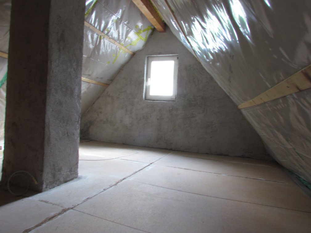 • Obergeschoss: Duschbad, vier Schlafzimmer – eines davon mit Zugang zum Balkon bzw. der dritten Terrasse, Dachluke zum Speicher