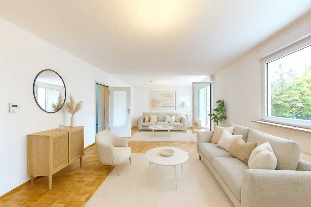 Die ruhige Feldrandlage mit direktem Zugang zur Natur, der sonnige Garten und die fußläufig erreichbare Europäische Schule machen diese Immobilie besonders attraktiv für Familien.