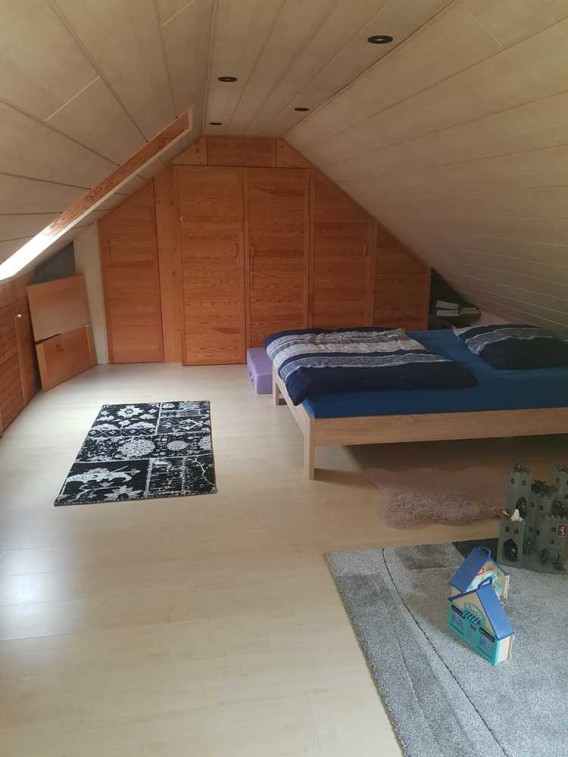 Die Wohnung wurde 2016 umfassend modernisiert – insbesondere Bad und Küche präsentieren sich in einem sehr gepflegten, hochwertigen Zustand. Der offene Wohn-Essbereich mit Dachgaube sorgt für eine helle und freundliche Atmosphäre. Der Spitzboden ist über eine Treppe erreichbar und bietet dank zweier Dachfenster zusätzlichen, vielseitig nutzbaren Raum (z. B. Arbeits- oder Gästebereich).