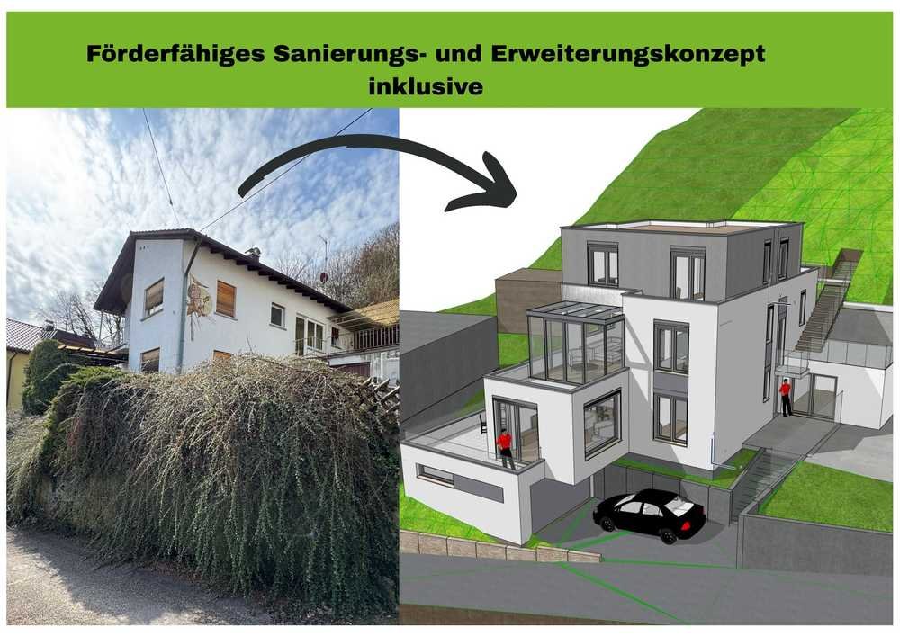 Seltene Gelegenheit in Premiumlage bei Baden-Baden: Ihr neues förderfähiges Ein- bis Zweifamilienhaus überzeugt mit schöner Aussicht und großem Entwicklungspotenzial. Das Haus befindet sich in einem renovierungsbedürftigen Zustand und wird im aktuellen Zustand inklusive der Baugenehmigung für die Garage und alle Erweiterungen verkauft. Der architektonische Entwurf zeigt das Haus nach der Sanierung und Erweiterung zu einer Gesamtwohnfläche von ca. 225m².