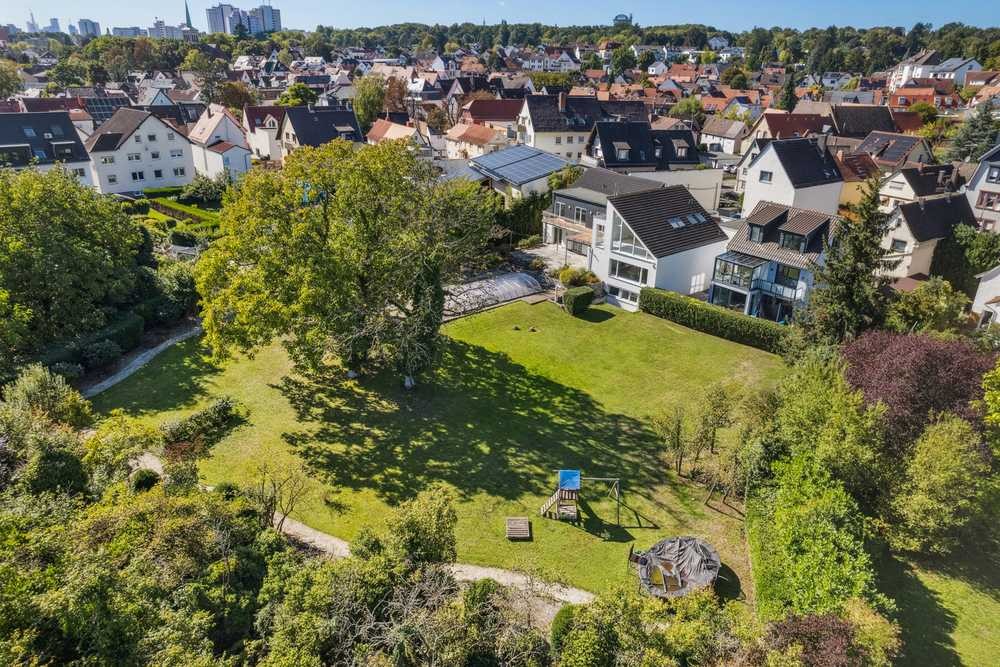 Auf einem über 2.500 m² großen, parkähnlich angelegten Grundstück präsentiert sich diese außergewöhnliche Villa mit einer Gesamtwohnfläche von mehr als 430 m². Die Immobilie vereint großzügiges Wohnen, hochwertige Ausstattung und verschiedene Nutzungskonzepte in einer der grünsten Lagen Frankfurts – im traditionsreichen Stadtteil Seckbach.
