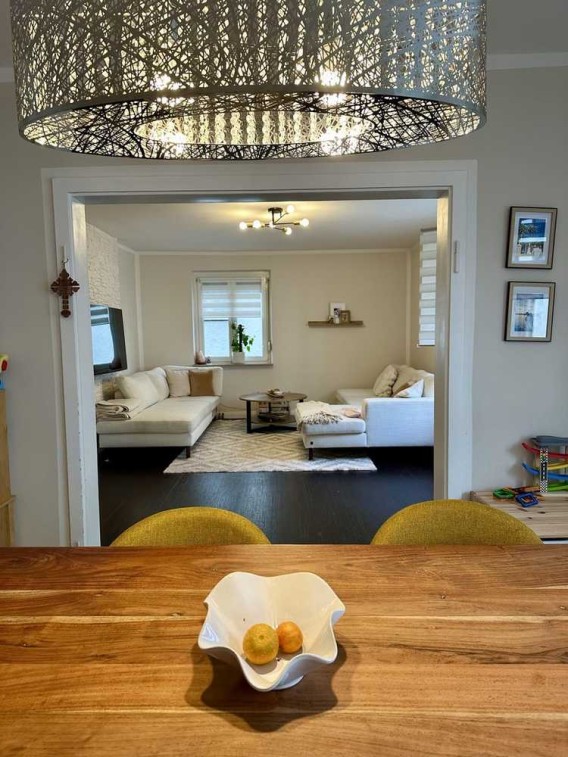 •Sehr gute Raumaufteilung mit idealen Stellmöglichkeiten. Eine Flügeltür ist vorhanden, um Wohn- und Essbereich bei Bedarf voneinander abzutrennen.