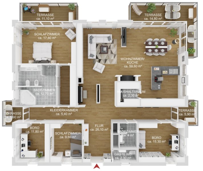 Mit einer großzügigen Wohnfläche von rund 200 m² bietet die Wohnung höchsten Wohnkomfort. Der Zugang zum Haus erfolgt bequem über die Tiefgarage, in der Ihnen zwei geräumige Stellplätze zur Verfügung stehen. Die Wohnung befindet sich im ersten Obergeschoss eines Vierparteienhauses, eingebettet in eine parkähnliche Wohnanlage mit insgesamt sieben Mehrfamilienhäusern.
