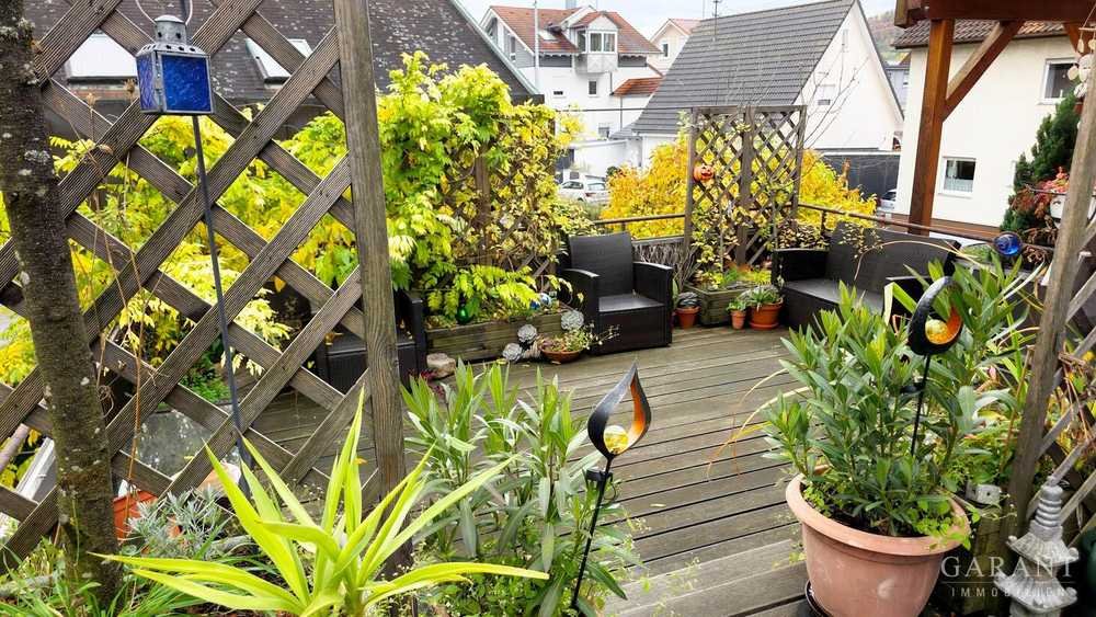 Geräumige Wohnung mit Laminatböden (2020), modernem Bad (2004) und direktem Zugang zur großzügigen, ca. 50 qm großen Terrasse.