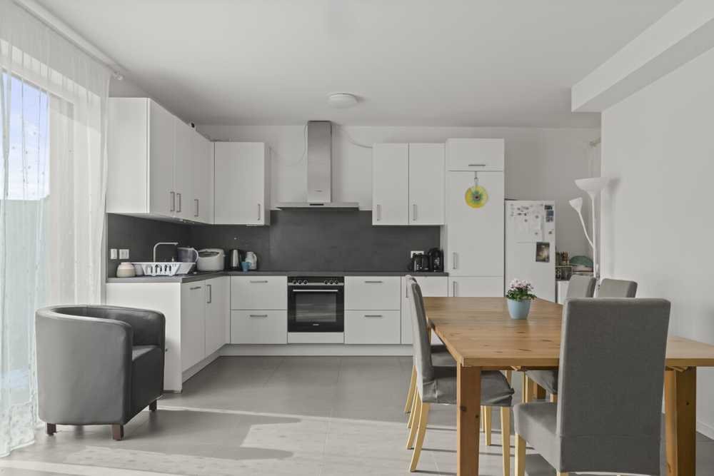 Im Inneren erwartet Sie eine hochwertige Einbauküche (EBK), ein großzügiger Wohn- und Essbereich mit Zugang zum Balkon, sowie drei Schlafzimmer, von denen eines bei Bedarf geöffnet werden kann, um den Wohnbereich zu erweitern. Das Badezimmer ist modern ausgestattet, verfügt über eine ebenerdige Dusche und ist somit komfortabel und barrierefreundlich.