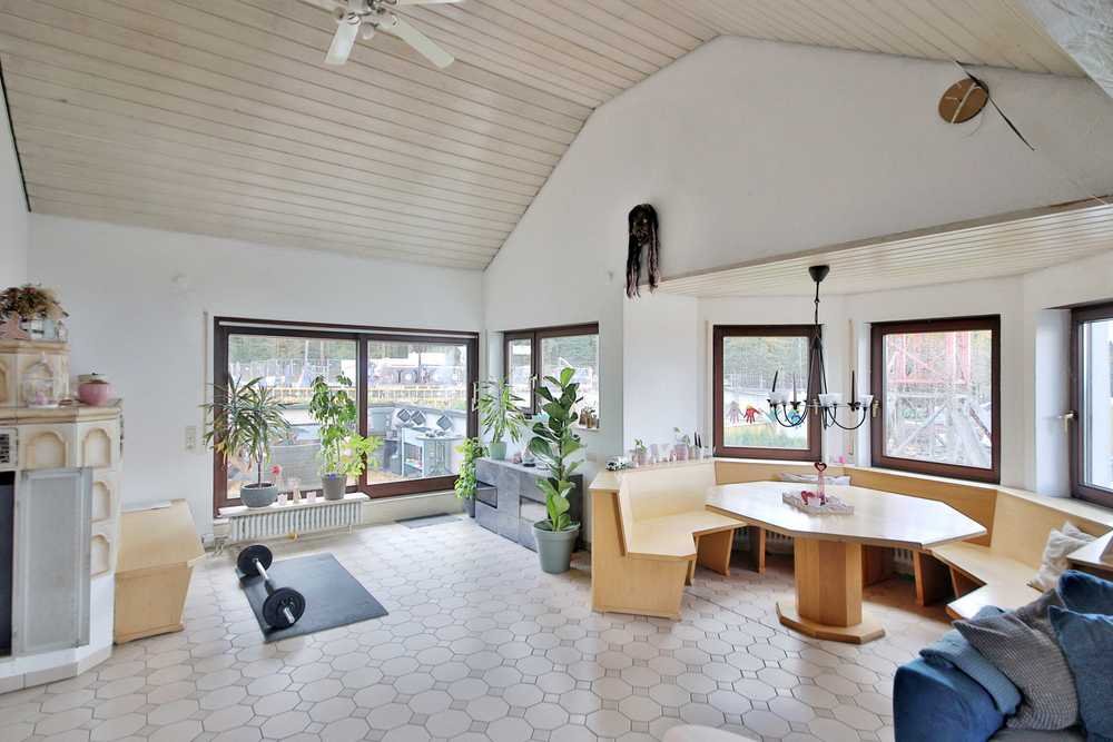 Der offene Wohn- und Essbereich bildet das Herzstück der Wohnung. Große Fensterfronten lassen viel Tageslicht herein und schaffen eine freundliche, einladende Atmosphäre. Vom Wohnbereich aus gelangen Sie auf den Südbalkon, der einen traumhaften Blick auf die umliegenden Wälder von Neuenbürg bietet. Hier können Sie den Morgen bei einem gemütlichen Frühstück genießen oder den Abend entspannt beim Sonnenuntergang ausklingen lassen, ein perfekter Ort zum Wohlfühlen und Entspannen.