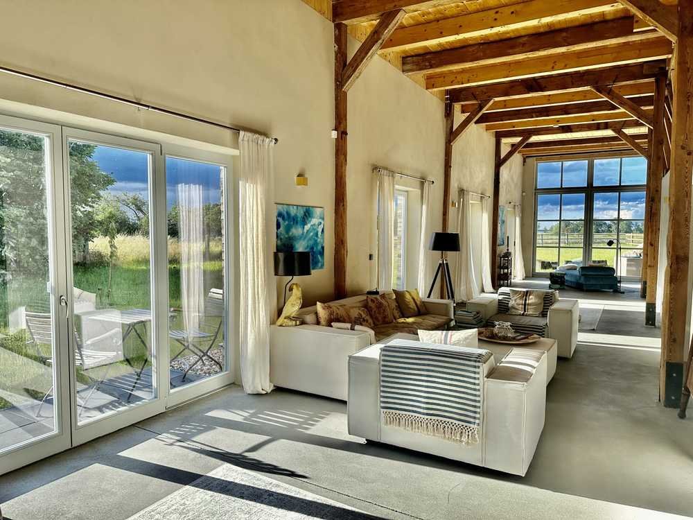 6 Zimmer: EG. große Wohnküche, Halle mit 9m Höhe, Tenne-Wohnraum