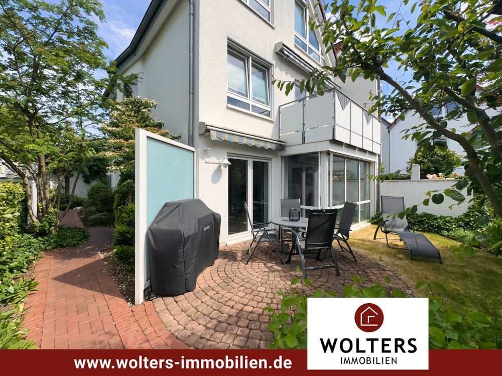 Der kleine, pflegeleichte Garten lädt zum Entspannen ein. Die Terrasse mit elektrischer Markise bietet sonnige und schattige Plätze – ideal für gemütliche Stunden im Freien.