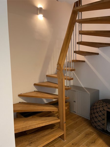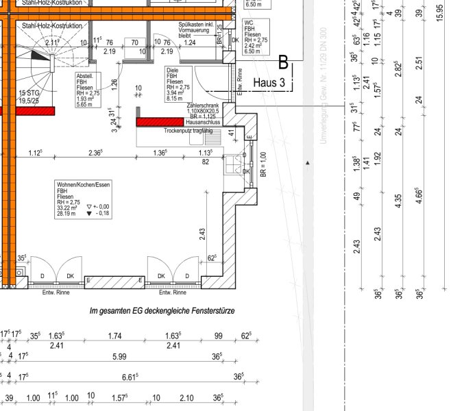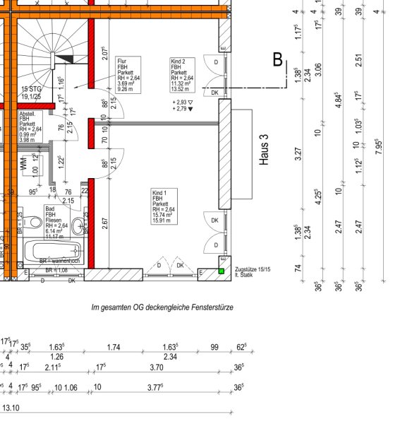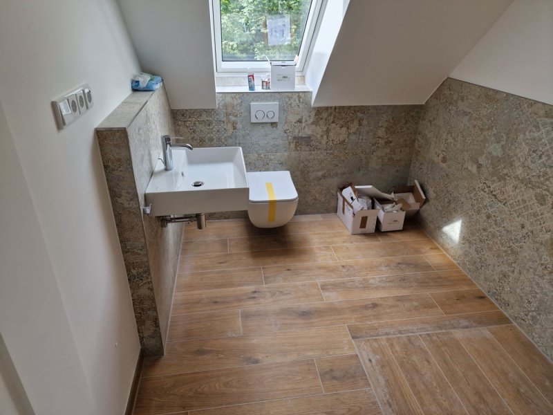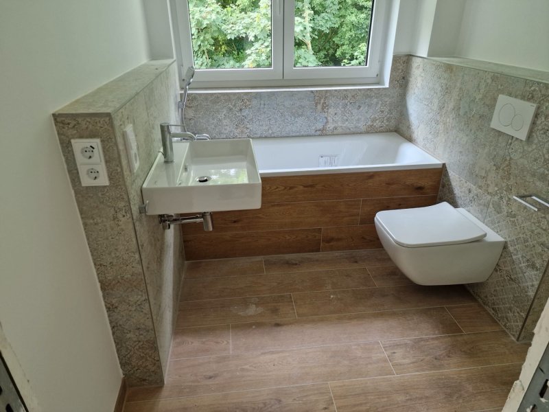 - Bodenbeläge Parkett bzw. Fliesen in Holzoptik (im EG und den Bädern)