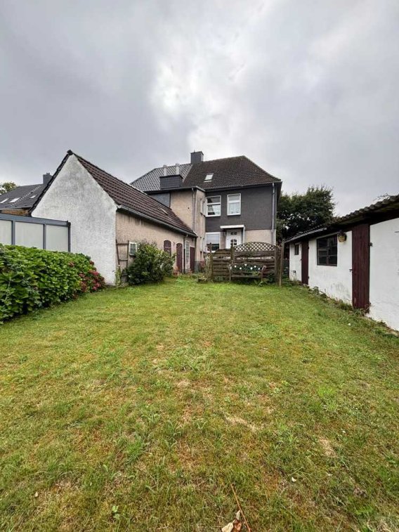 Renovierungsbedürftige Doppelhaushälfte, Baujahr ca. 1918, 2,5-geschossige Bauweise, ca. 100qm Wohnfläche zzgl. 1 Zimmer im Dachgeschoss, unterkellert, ca. 3 jahre alte Gaszentralheizung, 342qm Grundstück, Garten, Garage, Schuppen,