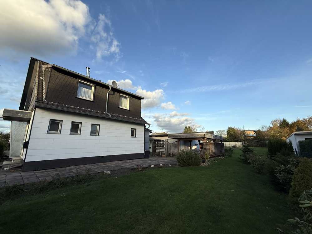 Das Grundstück ist rechteckig geschnitten, verfügt über einen Carport und eine geräumige Garage.