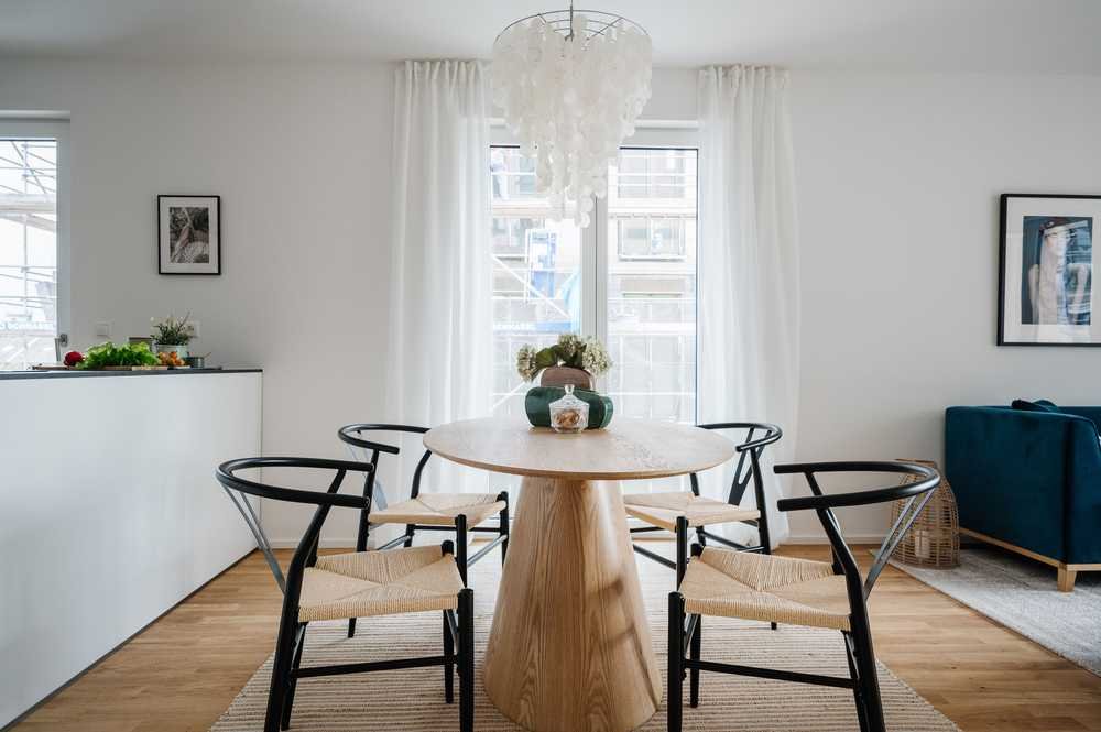 Ein besonderes Highlight sind die großzügigen Fensterflächen auf beiden Seiten der Wohnung, die für außergewöhnlich viel Licht sorgen und freie Blickachsen schaffen – ein offenes Wohngefühl, das man selten findet. Der offene Wohn-, Ess- und Kochbereich mit Zugang zur sonnigen Westloggia bildet das Herzstück der Wohnung und lädt zu entspannten Momenten in einer freundlichen, luftigen Atmosphäre ein.