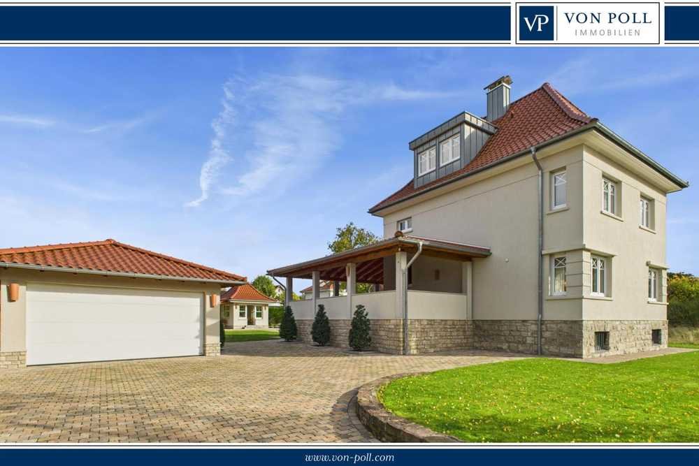 Auch die Außenanlagen überzeugen in jeder Hinsicht. Ein vollständig saniertes Teehaus bietet zusätzlichen Raum zum Entspannen, während das separate Wellnesshaus mit Sauna im skandinavischen Stil für Erholung und Wohlbefinden sorgt. Die große Veranda lädt in den Sommermonaten zum Verweilen ein und eröffnet den Blick auf den liebevoll angelegten Garten, der mit gepflegten Grünflächen und einer geschmackvollen Gestaltung beeindruckt. Die Doppelgarage verfügt über einen separaten Abstellraum für Gartengeräte, Fahrräder und mehr. Alle Verkehrs- und Wegeflächen sind mit wasserdurchlässigem Pflaster versehen, was den hochwertigen Gesamteindruck abrundet.