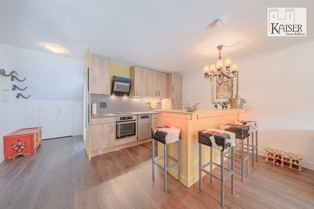 Die offene Küche mit Theke fügt sich harmonisch in den Wohnraum ein und ist perfekt für gesellige Abende.