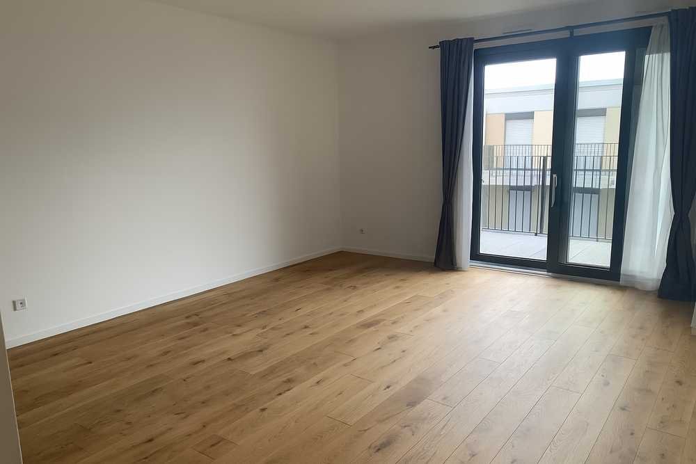 Auf ca. 60 m² bietet sie einen hellen Wohnbereich mit bodentiefen Fenstern und Zugang zum ca. 8 m² großen Westbalkon, ein ruhiges Schlafzimmer mit Blick in den grünen Innenhof sowie ein modernes Bad mit bodengleicher Dusche. Hochwertige Details wie Echtholz-Dielenparkett, elektrische Rollläden und eine Nobilia-Einbauküche mit NEFF-Geräten unterstreichen den gehobenen Anspruch.