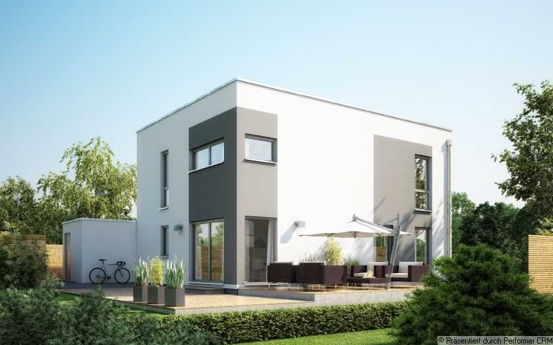 Gestaltungs-Varianten mit einer 2-geschossigen Galerie über dem Wohnraum, einer großen Glasfassade oder mit Balkon erhalten Sie im persönlichen Gespräch mit Ihrem Hausbau-Berater.