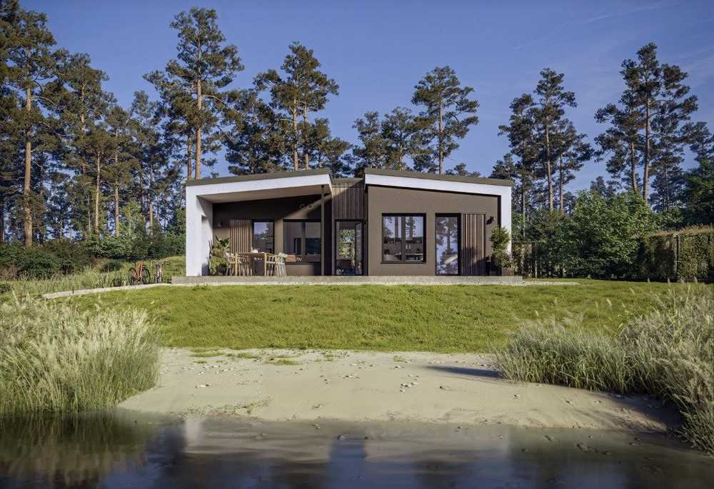 Entdecken Sie den COMPACT 60, einen modernen Bungalow, der ganz auf Ihre Wünsche und Vorstellungen zugeschnitten ist. Auf einer Wohnfläche von 76 m² erwartet Sie ein durchdachtes Raumkonzept mit 5 Zimmern, das sowohl Singles als auch Familien ein komfortables Zuhause bietet. Die klare Architektur, das flach geneigte Satteldach und große Fensterflächen sorgen für eine lichtdurchflutete Atmosphäre und eine einladende Raumwirkung. Diese Bauweise ist ideal für alle, die das Leben auf einer Ebene genießen möchten, sei es im Schlafzimmer, im Kinderzimmer oder im gemütlichen Büro. Genießen Sie die direkte Anbindung zur Terrasse, wo Sie entspannende Stunden im Freien verbringen können.