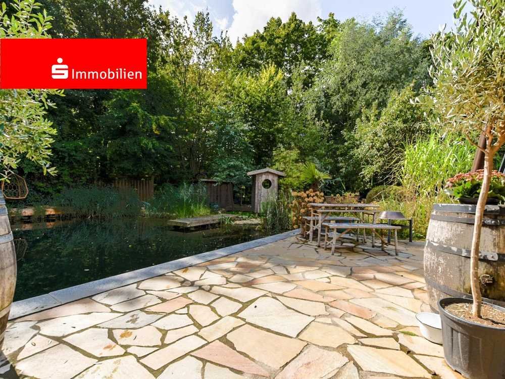 Haus Nr. 2a ist das Ursprungshaus aus dem Baujahr 1972 mit 220 m² Wohnfläche, welches vor 12 Jahren umfangreich saniert und modernisiert wurde. Es handelt sich um ein Fachwerkbau mit nur einer tragenden Wand. So könnten Sie hier Ihrer Fantasie für eine neue Raumaufteilung freien Lauf lassen. Neben den vielen Fensterfronten sorgen zusätzliche großzügige Dachfenster für sonnendurchflutete Räume. In der großen Küche ist viel Platz zum Kochen und Backen. Hier kann die Familie gemütlich zusammensitzen. Die in 2012 eingebaute Küche wurde seinerzeit mit umfangreichen hochwertigen Geräten und einer Küchenhexe ausgestattet. Im sehr großzügigen Wohn- und Essbereich verbringen Sie gesellige Stunden mit reichlich Platz. Unter den hochwertigen Eiche-Klickparkett befindet sich eine Fußbodenheizung, so können Sie auch im Winter auf kalte Füße verzichten. Vom Wohnbereich betreten Sie die große, teilweise überdachte, Terrasse in Sonnenlage und genießen Ruhe und Erholung. Im Erdgeschoss befinden sich zwei weitere Zimmer und ein großer Wintergarten, sowie ein Duschbad. Im Souterrain erwarten Sie zwei Zimmer und ein weiteres Duschbad. Ein besonderes Highlight ist der große Badeteich im Garten. Hier können Sie nach Ihrem Arbeitstag Ihre Bahnen ziehen oder Ihre Kinder toben und plantschen hier nach Herzenslust.