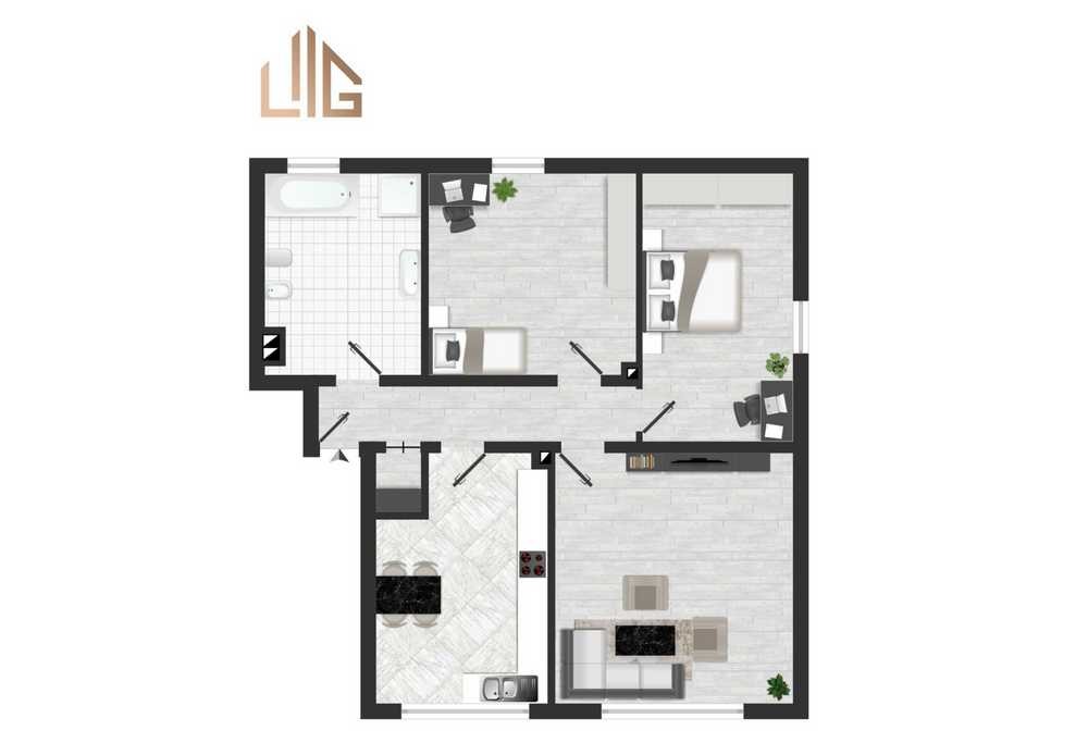 Die Wohnung verfügt über ein geräumiges Wohnzimmer, ein Schlafzimmer, ein weiteres Zimmer (ideal als Kinder-, Gäste- oder Arbeitszimmer), eine separate Küche mit Fenster sowie ein modernes Tageslichtbad mit Dusche. Der Zustand ist renoviert – Böden, Wände und Sanitäranlagen wurden modernisiert.