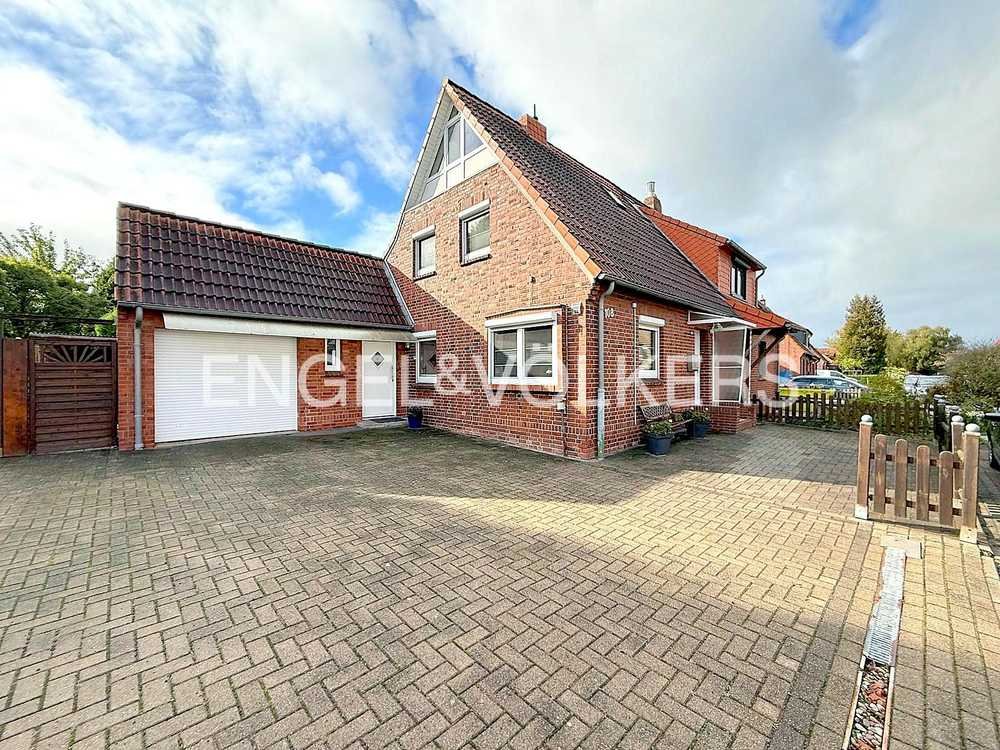 Diese gepflegte Siedlungshälfte, erbaut ca. 1936 in solider Massivbauweise mit zeitloser Klinkerfassade, befindet sich im beliebten Wilhelmshavener Stadtteil Voslapp auf einem 585 m² großen Grundstück. Mit einer Wohnfläche von ca. 105 m² bietet das Haus genügend Platz für die junge Familie, Paare oder Singles mit Vorliebe für großzügiges Wohnen. Insgesamt verfügt das Haus über drei gut geschnittene Zimmer zzgl. ausgebautem Spitzboden. Das Highlight im Erdgeschoss ist der großzügige Wohn-Essbereich mit Schiebeelement zur teilüberdachten Terrasse. Angrenzend befindet sich die Küche, ein Duschbad mit Waschmaschinenanschluss sowie ein praktischer Hauswirtschaftsraum. Die Küche ist mit einer soliden Einbauküche inklusive hochwertiger Bosch-Markengeräte ausgestattet und verfügt über Platz für einen Esstisch. Der praktische Seiteneingang bietet besonderen Komfort für Hundeliebhaber oder Familien mit Kind. Über die im Jahr 2007 erneuerte Holztreppe erreichen Sie das Obergeschoss, das das Schlafzimmer, ein Zimmer mit Zugang zum ausgebauten Dachboden und das Wannenbad beherbergt. Der Teilkeller bietet zusätzliche Abstellfläche. Über die Jahre hinweg wurden bereits umfangreiche Sanierungen vorgenommen: Die Gas-Brennwerttherme der Marke Vaillant wurde erst 2024 erneuert, während beide Bäder 2011/2012 komplett saniert wurden. Auch die Elektrik wurde überarbeitet, die Türen 2007/2008 erneuert und die Doppelverglasten Kunststofffenster (1998) sowie Velux-Dachfenster (1997) ausgetauscht. Für den Sonnenschutz sorgen Außenrollläden an allen Fenstern (außer im Spitzboden), wobei die Rollos im Wohnzimmer praktischerweise elektrisch betrieben werden. Die Böden sind mit Fliesen und Kork ausgestattet. Im Außenbereich erwarten Sie ein schön angelegter Garten, eine 2023 neu geflieste Terrasse, ein Fahrradschuppen sowie zwei weitere Gartenhäuschen. Eine Garage und eine breite Auffahrt stehen für Ihren Fuhrpark zur Verfügung. Überzeugen Sie sich gerne bei einer Besichtigung von dieser attraktiven Siedlungshälfte.