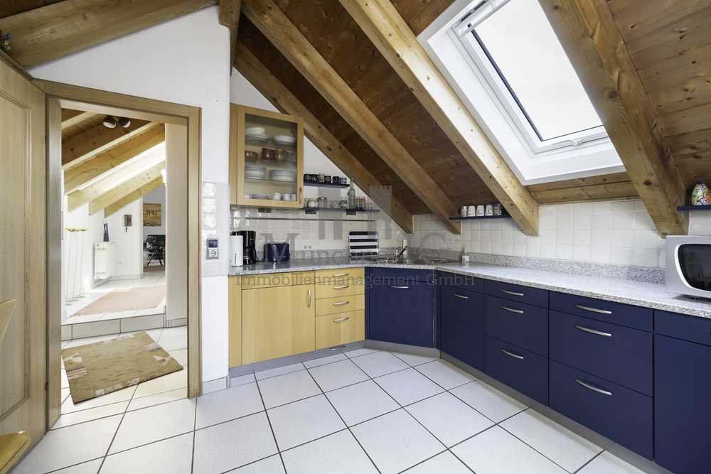 Im unteren Wohnbereich befindet sich der großzügige Wohnbereich mit Zugang zum überdachten Balkon, der nach Westen ausgerichtet ist und angenehme Sonnenstunden am Nachmittag ermöglichen. Die Küche ist separat gehalten und bietet nicht nur eine voll ausgestattete Einbauküche mit sämtlichen Elektrogeräten, sondern auch ausreichend Platz für einen Esstisch - ideal für gemütliche Familienmahlzeiten oder geselliges Beisammensitzen.