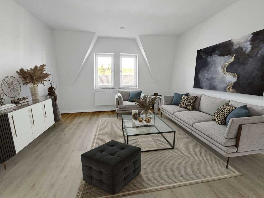 Die Dachgeschosswohnung wurde sorgfältig saniert und verfügt über eine moderne Ausstattung, die perfekt mit dem historischen Ambiente des Gebäudes harmoniert.
