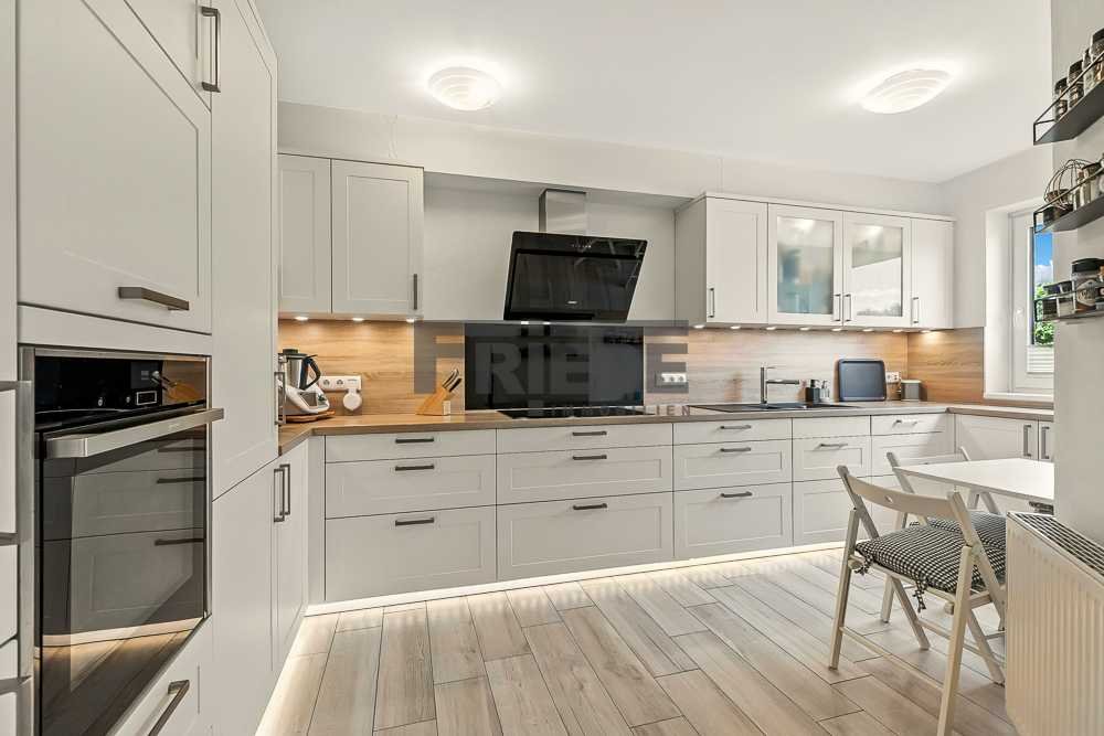 Dieses charmante Reihenmittelhaus verbindet zeitgemäßen Wohnkomfort mit einer behaglichen Atmosphäre und überzeugt durch seine durchdachte Raumgestaltung sowie den liebevoll gestalteten Garten. Auf ca. 95 m² Wohnfläche erwartet Sie im Erdgeschoss ein freundlicher Eingangsbereich, eine moderne Einbauküche in Weiß mit hochwertigen Geräten, ein Gäste-WC mit bodentiefer Dusche sowie ein großzügiger Wohn- und Essbereich mit direktem Zugang zur sonnigen Terrasse.
