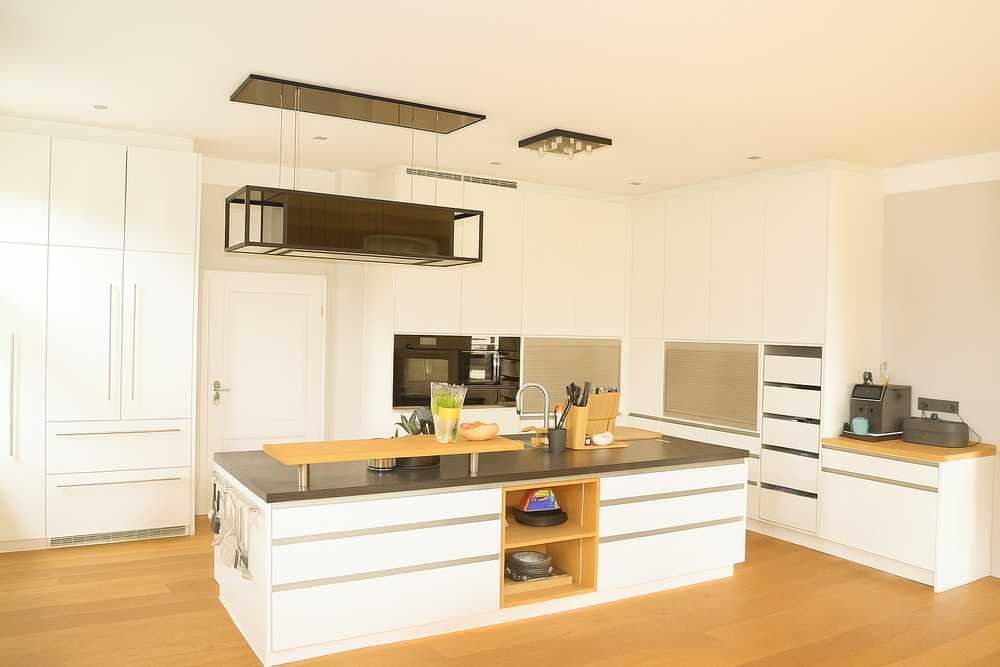 Zeitloses Design, grifflose Fronten und Arbeitsflächen aus edlem Naturstein schaffen eine elegante Atmosphäre.