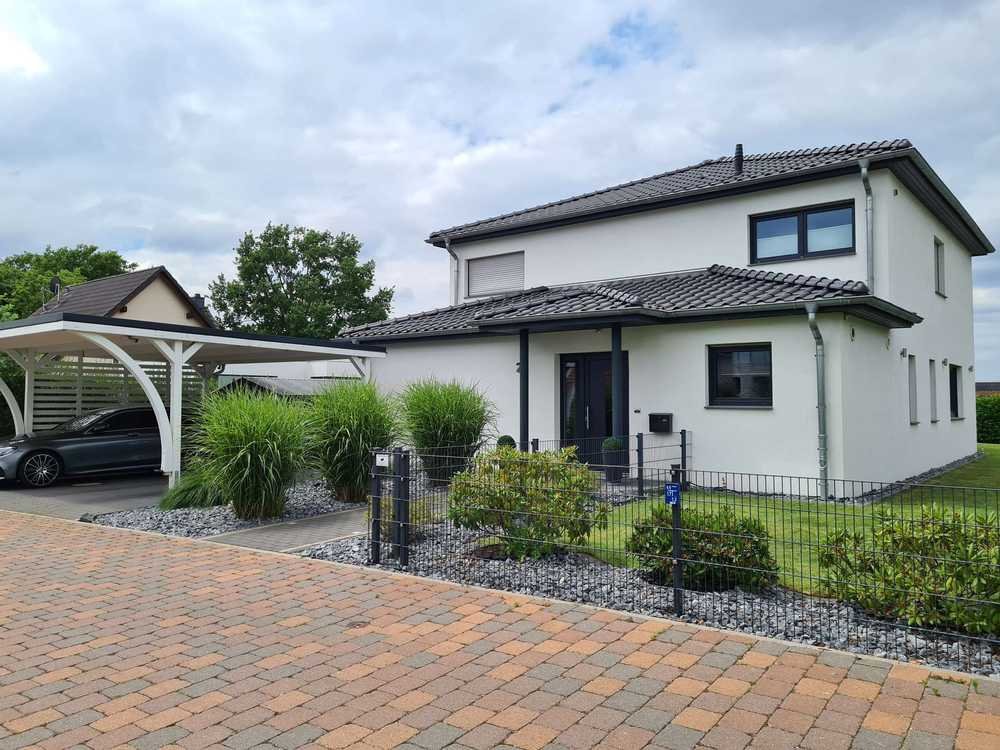 Vor dem Haus steht ein großzügiges Doppelcarport, das deinen Autos Schutz vor Wind und Wetter bietet.