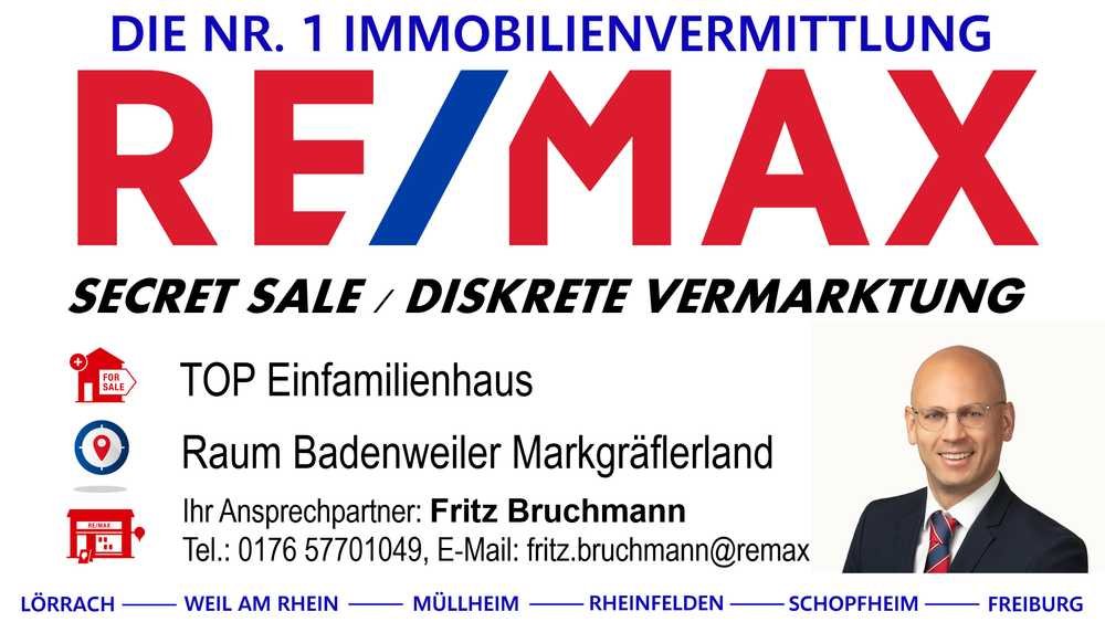 Das große RE/MAX Immobilien Netzwerk Südbaden // Lörrach-Weil am Rhein-Rheinfelden-Schopfheim-Müllheim-Freiburg // Die *NR. 1* Immobilienvermittlung mit Ihrem 1. Ansprechpartner Fritz Bruchmann von RE/MAX in Ihrer Nähe freuen wir uns Ihnen diese Immobilie im exklusiven Allein-Auftrag zu präsentieren: