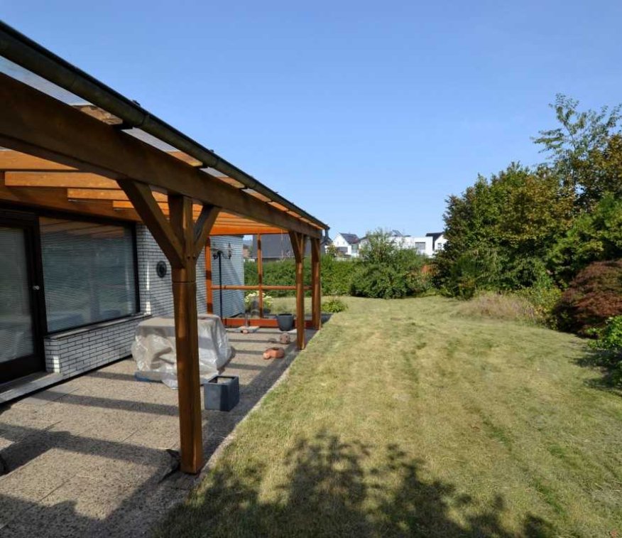 Vom Wohnbereich haben Sie Zugang in den optimal ausgerichteten Garten, der Ihnen viel Privatsphäre bietet und zum Entspannen einlädt. Unter der überdachten Terrasse besteht die Möglichkeit Ihren Grillabend auch bei Regenwetter zu genießen.
