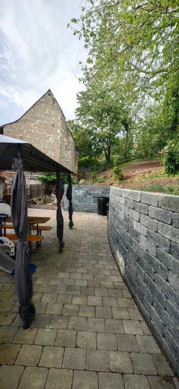 Im Jahr 2022 wurden der Eingangsbereich, die Haustür, eine verzinkte Eisentreppe, das Garagentor sowie zwei gepflasterte Stellplätze erneuert. Dreifach verglaste Fenster der Marke Salamander mit Rollläden und Insektenschutz bieten hervorragende Wärme- und Schalldämmung. Der Außenbereich wurde 2023 neu angelegt und umfasst eine einladende Natursteinterrasse.