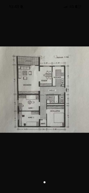 Die Wohnung bietet viel Platz für eine Familie, einen schönen Balkon mit weiter Aussicht sowie Feldwege und Bauernhöfe direkt in der Nähe.
