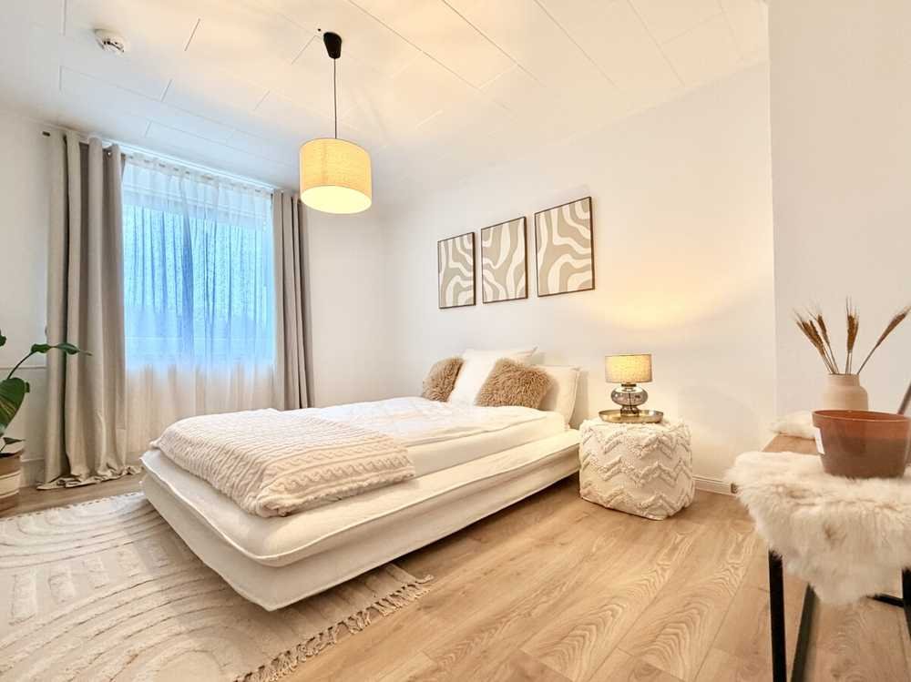 Die Räumlichkeiten verteilen sich auf 4 Zimmer, eine Küche, eine Diele sowie zwei modern ausgestattete Badezimmer. Eines der Zimmer fungiert als Durchgangszimmer und kann flexibel als Arbeits-, Ankleide-, Schlaf- oder Kinderzimmer genutzt werden.