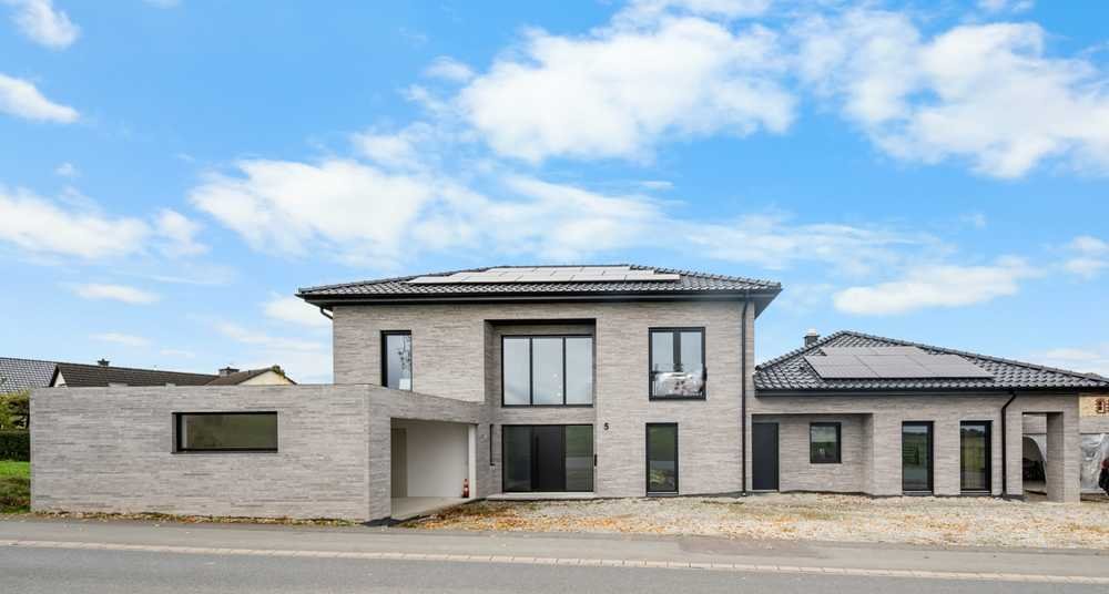 Das repräsentative Architektenhaus (ca. 160 m² Wohnfläche) mit integrierter Bungalow-Einheit (ca. 78 m) verbindet modernen puristischen Stil, fortschrittliche Energietechnik und hohen Wohnkomfort. Auf einem großzügigem Grundstück entstand ein klar strukturiertes, energieeffizientes Gesamtkonzept, das anspruchsvolles Wohnen mit zukunftsweisender Technologie vereint.