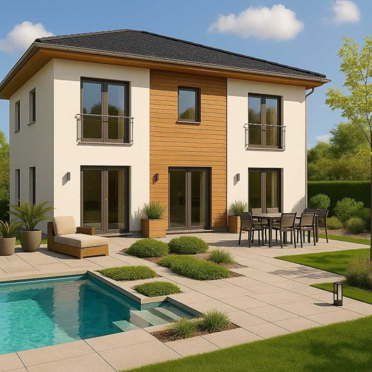 Die City Villa 6 beeindruckt mit einem durchdachten architektonischen Konzept und bietet Ihnen eine großzügige Wohnfläche von über 166 m². Die durchdachte Raumaufteilung ermöglicht es Ihnen, Ihre individuellen Wohnträume zu verwirklichen. Das zweigeschossige Design vereint Funktionalität und ästhetische Ansprüche: Im Obergeschoss erwarten Sie zwei großzügige Kinderzimmer, umgeben von einem geräumigen Badezimmer. Das Erdgeschoss überzeugt durch einen einladenden Eingangsbereich, der sich in einen weitläufigen Wohn- und Essbereich sowie eine modern gestaltete offene Küche entfaltet.