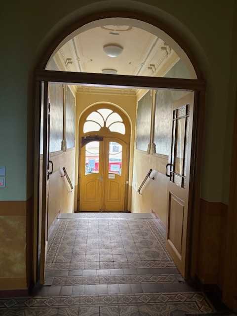 Im Hauseingang Stuck und Malerei und traditionelle Keramikböden.