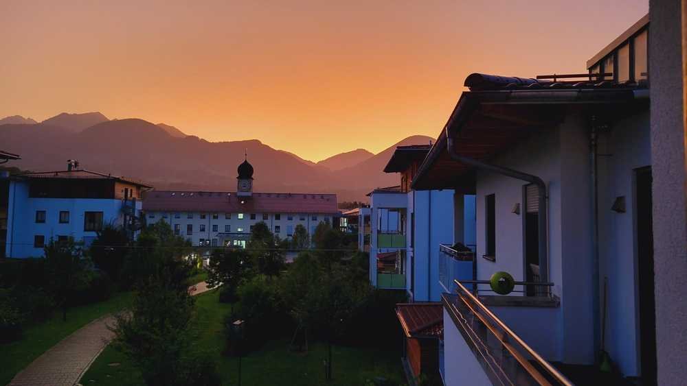 Die Wohnung verfügt in der aktuellen Konstellation über zwei Balkone. Der großzügige Hauptbalkon mit südlicher Ausrichtung ermöglicht den Blick in das schön gestaltete Umfeld der Anlage, sowie einen traumhaften Fernblick in das nahe und ferne Bergpanorama bis hin zum Kaisergebirge und dem Wendelstein.