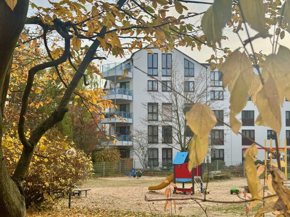 - Traumhafter Blick auf die großzügigen Grünflächen der Wohnanlage.