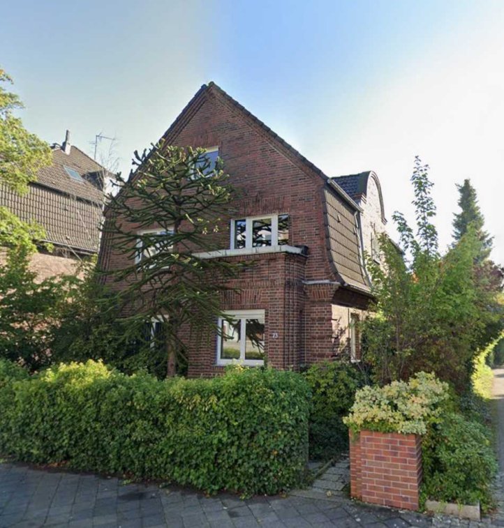 originalen Zustand mit schönem Rotklinker im Stil des Backsteinexpressionismus. Die Rotklinkervilla wurde 1928 erbaut und umfangreich modernisiert. Das Dach wurde 1988 erneuert.