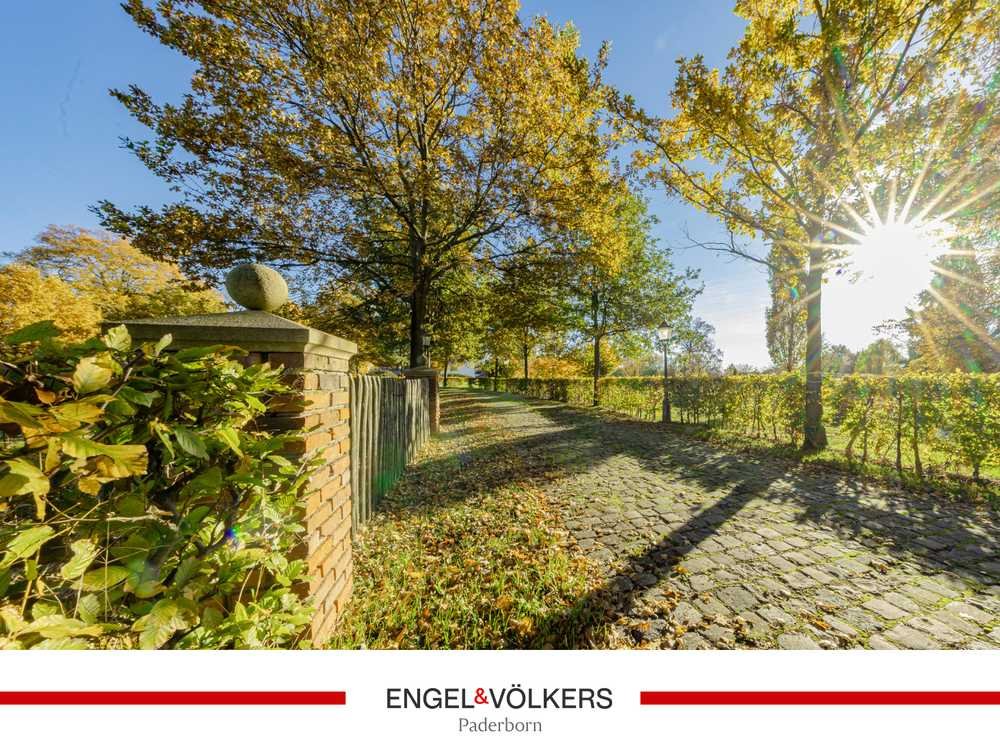 Eine repräsentative Allee mit Natursteinpflaster vermittelt bereits bei der Anfahrt ein Gefühl von Eleganz, Ruhe und Ankommen.