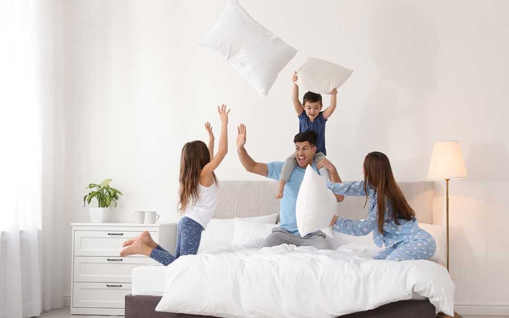 Im Erdgeschoss bietet das Familienhaus eine halboffene Küche zum großzügigen Wohn- und Essbereich mit bodentiefen Fenstern. Daneben gibt es auf dieser Etage ein Gäste-WC und eine Diele mit Garderobe. Praktisch ist auch der Hauswirtschaftsraum mit direktem Zugang in den Garten. Im Dachgeschoss stehen den Bewohnern große Individualräume zur Verfügung. Das Kinder- und das Eltern-Schlafzimmer bieten jeweils über 16 Quadratmeter Wohnfläche. Komplettiert wird die Etage durch ein Familien-Badezimmer und ein praktisches Home-Office.