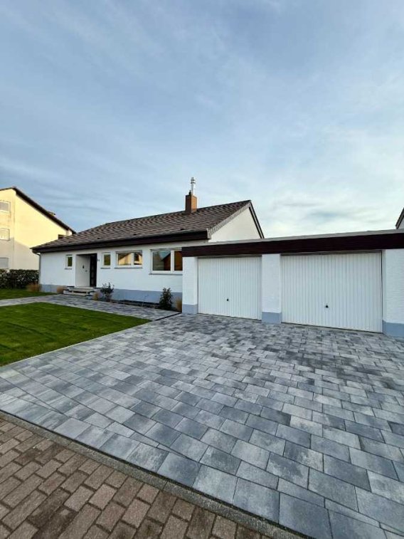 Komplett neue Außenanlage, gepflasterter Hofbereich sowie neu verlegter Rollrasen