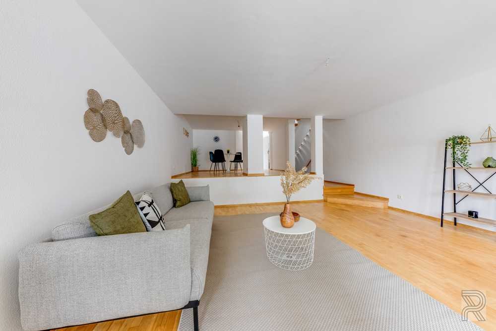 Das Erdgeschoss überzeugt mit einem großzügigen Wohn- und Essbereich, einer separaten Küche, einem Gäste-WC sowie einem praktischen Abstellraum. Im Obergeschoss befinden sich zwei komfortable Schlafzimmer, ein Badezimmer mit Dusche, ein weiteres Bad mit Badewanne sowie der Balkon mit grünem Ausblick.
