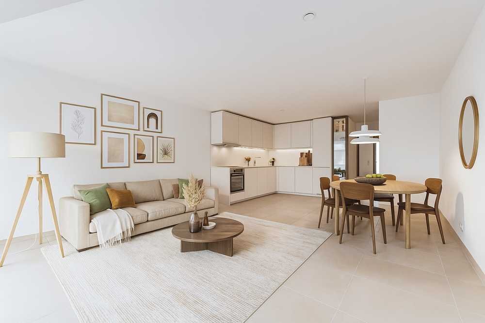 Diese moderne 3-Zimmer-Wohnung im 1. Dachgeschoss überzeugt durch ihre klare Raumaufteilung, helle Wohnbereiche und ein wohnfreundliches Ambiente. Der offen gestaltete Wohn- und Essbereich mit geplanter Küche bildet das Herzstück der Wohnung. Großzügige Fensterflächen sorgen für eine angenehme Lichtfülle und schaffen eine freundliche, offene Atmosphäre.