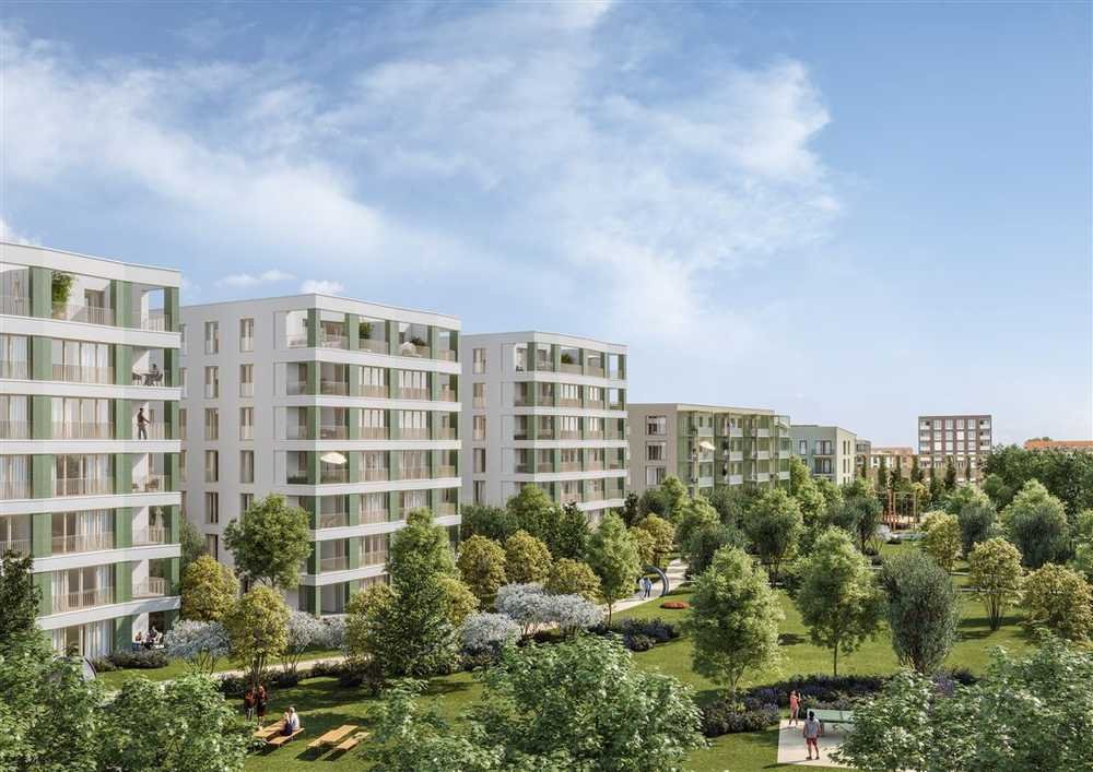 Die komfortable 4-Zimmer-Eigentumswohnung ist mit rund 85 m² Wohnfläche ausgestattet. Der rund 29 m² Wohn- und Essbereich ist offen gestaltet und beinhaltet ebenso eine offene Küche. Von hier aus gelangen Sie auf Ihre private Loggia, von der Sie den unverbaubaren Blick auf den rund 7.000 m² großen Quartierspark genießen können. Darüber hinaus verfügt die Wohnung über drei weitere Zimmer, die als Schlaf- oder Gästezimmer sowie als Home Office genutzt werden können. Das Badezimmer besitzt eine bodengleich geflieste Dusche. Platz für die Waschmaschine findet sich im Gäste-WC.