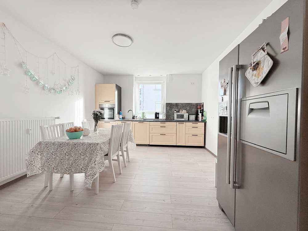 Bei dem Betreten der Wohnung erwartet Sie die Garderobe mit angrenzender Küche und Tageslicht-Badezimmer welches über eine Dusche verfügt und mündet in die ca. 17,70m² große Küche mit Esszimmer.