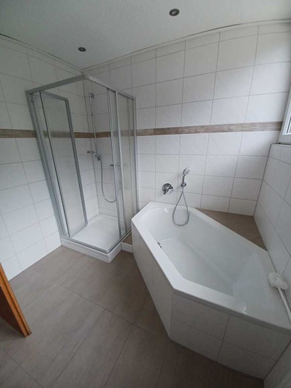 Küche und einem modernen Tageslichtbad mit Badewanne und Dusche im