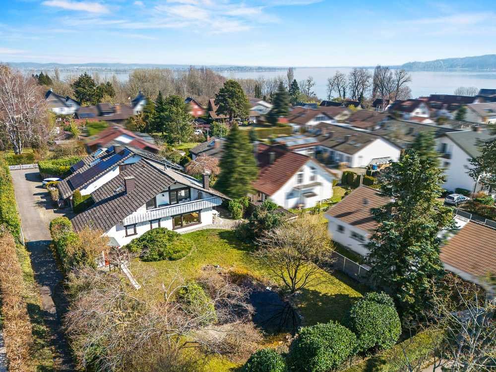 Willkommen in diesem lebenswerten Haus in der idyllischen Ortschaft Horn auf der Halbinsel Höri am Bodensee. Auf ca. 169 m² Wohnfläche und einem außergewöhnlichen Grundstück von ca. 917 m² bietet das gut gepflegte Haus aus dem Jahr 1978 hohen Wohnkomfort und einen beeindruckend weitläufigen Garten. Die seenahe Lage ist ideal für Käufer, die die Ruhe und die Natur auf der Höri zu schätzen wissen. Die gute Bildungsinfrastruktur auf der Höri und am Bodensee macht dieses Haus aber auch für Familien attraktiv, die eine ruhige, sichere, naturnahe Umgebung suchen. Das Haus begrüßt Sie im Erdgeschoss mit einem großen Eingangsbereich, einem hellen Gäste-Badezimmer mit Dusche und natürlich mit dem geräumigen Wohn- und Essbereich, der gemütliche und kommunikative Stunden verspricht. Der offene Grundriss verbindet harmonisch die Wohnbereiche Kochen, Essen und Wohnen und bietet ein einladendes Ambiente als Lebensmittelpunkt des Hauses. Der Kamin in Kombination mit den edlen Holzdielen ist nicht nur an kalten Tagen ein besonderer Blickfang und ein wahrer Gemütlichkeitsgarant. Vom Wohnbereich aus haben Sie Zugang zur Terrasse und zum traumhaften Garten mit Gartenteich in Süd-West-Ausrichtung. Im Erdgeschoss befindet sich des Weiteren ein großzügiger Abstellraum bzw. eine Speisekammer sowie der Heizungs- und Hauswirtschaftsraum mit der zentralen Ölheizung aus dem Jahre 1991. Der dazugehörige Öltank ist im Außenbereich zu finden. Folgen wir nun der Treppe in die obere Etage, erreichen wir den privaten Wohn- und Schlafbereich des Hauses. Hier erwartet Sie das großzügige Badezimmer mit viel Tageslicht und einer großen Badewanne. Die drei Schlafzimmer bieten viel Gestaltungsfreiheit sowie direkte Zugänge zum großen überdachten Südwest-Balkon mit Blick auf den Garten und dem nicht minder schönen Südbalkon. Ein idealer Rückzugsort, um die Sonne in Ruhe zu genießen oder den Tag entspannt ausklingen zu lassen. Eine Garage mit Stellplatz rundet das attraktive Angebot ab. Nutzen Sie die Gelegenheit, dieses schön gelegene Zuhause am See zu Ihrem neuen Lebensmittelpunkt zu machen. Wir freuen uns auf Ihre Rückmeldung.