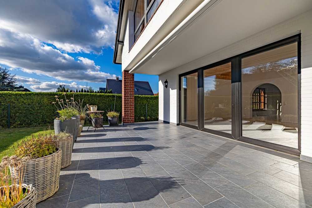 Die moderne Küche (2019) führt direkt auf die 2020 erweiterte Terrasse, ideal für sonnige Stunden im Freien. Eine Fußbodenheizung im gesamten Erdgeschoss sorgt für ein angenehmes Wohnklima und bereitet das Haus optimal für den späteren Betrieb mit einer Wärmepumpe vor.